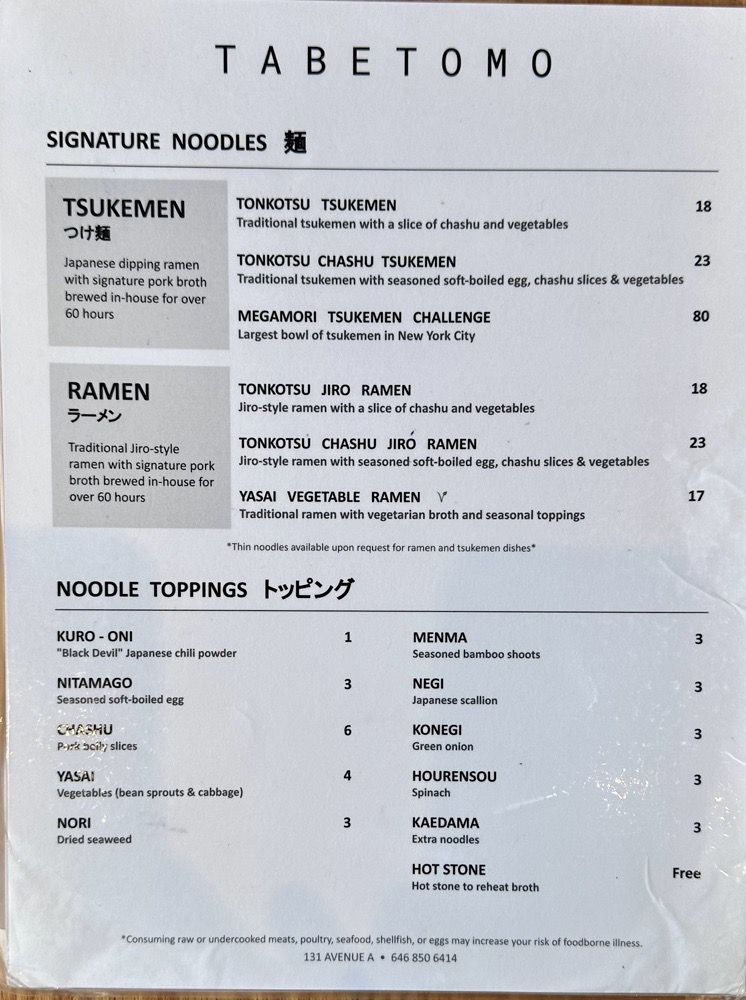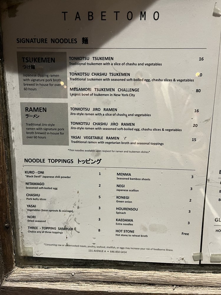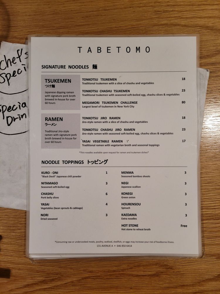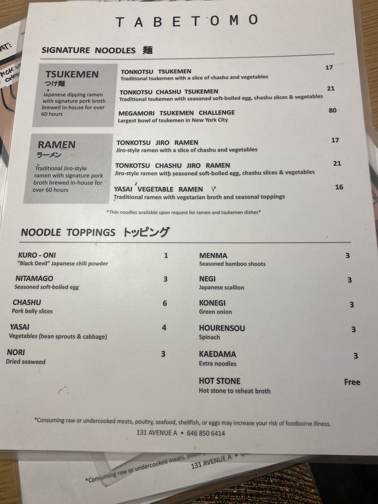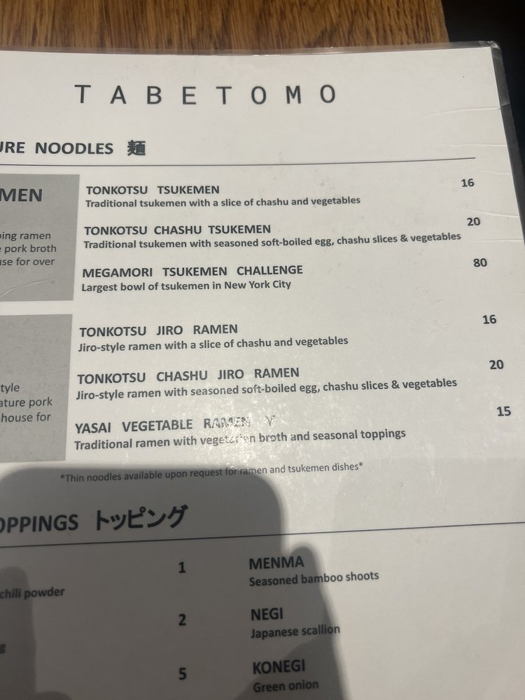 TabeTomo, a ramen hotspot located in New York City, offers a unique dining experience with a variety of options for all preferences. From vegan and vegetarian choices to meat lovers' delights, this restaurant caters to a diverse clientele. The menu features tonkotsu tsukemen ramen, chashu jiro tsukemen, and a range of other delicious dishes. Customers rave about the rich and savory soup, perfectly cooked noodles, and generous portion sizes. The cozy ambiance, friendly service, and authentic Japanese feel make TabeTomo a must-try for ramen enthusiasts. Whether dining solo or with a group, this restaurant promises a memorable culinary experience. Visit TabeTomo for a taste of traditional Jiro-style ramen and leave satisfied every time.